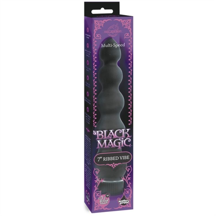 Êtes-vous prête pour l'extase ultime? Le Black Magic Ribbed Vibe procure de puissantes sensations à diverses vitesses, une stimulation clitoridienne et du point G, et s'accommode parfaitement des jeux anaux. Ce vibrateur ondulé possède une longueur imposante et est fait d'un élégant matériau au toucher soyeux. Le Black Magic Ribbed Vibe s'utilise partout où vous le souhaitez - il est étanche et pratiquement silencieux, même à pleine puissance! Offrez-vous des nuits de plaisir intense.