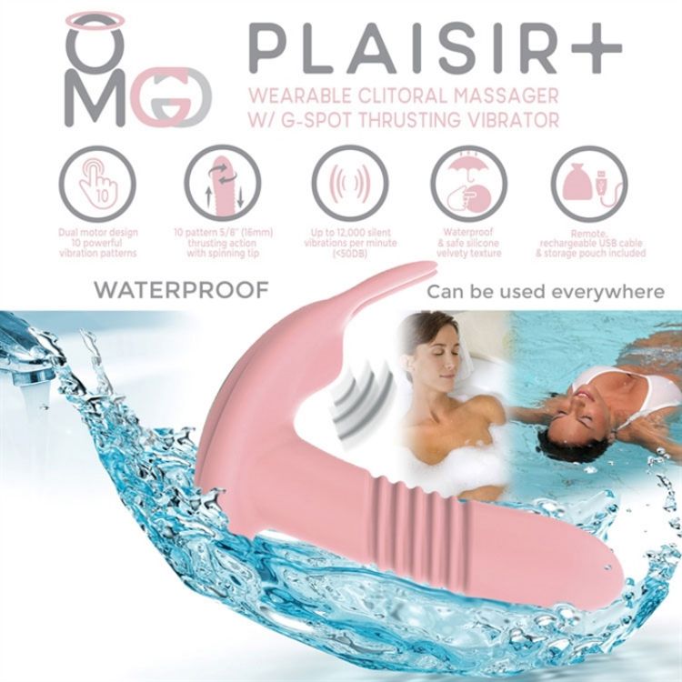 OMG's Plaisir+ est un stimulateur clitoridien portatif avec un stimulateur vibrant du point G et une télécommande, offrant l'effet halo sur la stimulation clitoridienne et du point G qui vous fera atteindre l'extase totale ! Ce masseur 2-en-1 stimule à la fois le point G et le clitoris pour des orgasmes simultanés. Sa tige striée avec une pointe rotative assure une stimulation simultanée du clitoris et du point G. Son design à double moteur offre 10 puissants modes de vibration qui envoient jusqu'à 12 000 vibrations silencieuses par minute. Son mouvement de poussée de 15 mm propose 10 réglages de motifs différents. Avec une attention particulière portée à la texture, son extérieur en silicone soyeux, mat et sûr pour le corps offre une expérience luxueuse à chaque utilisation. Il est étanche à 100 %, rechargeable par USB et est livré avec son propre sac de rangement. Quand la satisfaction sexuelle est primordiale, Plaisir+ vous fera crier, OMG ! Durée de fonctionnement : 1 heure Temps de chargement : 2 heures